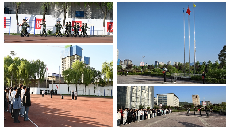 伴隨著激昂的《義勇軍進行曲》,在國旗護衛(wèi)隊成員的護送下,鮮艷的五星紅旗在兩個校區(qū)同時冉冉升起。全體師生莊嚴肅立,面向國旗行注目禮,表達對祖國的無限熱愛和對黨的絕對忠誠。