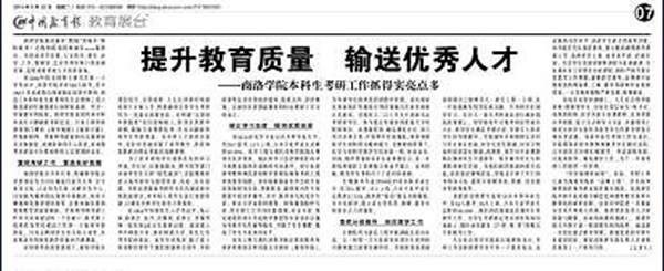 2014年我校本科生考研工作再次取得優(yōu)異成績(jī),實(shí)現(xiàn)了本科畢業(yè)生報(bào)考研究生總數(shù)和上線人數(shù)連續(xù)四年翻倍增長(zhǎng),引來(lái)了各界媒體的廣泛關(guān)注。5月20日,《中國(guó)教育報(bào)》第七版以《提升教育質(zhì)量 輸送優(yōu)秀人才——商洛學(xué)院本科生考研工作抓得實(shí)亮點(diǎn)多》為題,對(duì)我校本科生考研及學(xué)風(fēng)建設(shè)工作成就做了專題報(bào)道,從重視考研工作、營(yíng)造良好氛圍,端正學(xué)習(xí)態(tài)度、 提供優(yōu)質(zhì)資源,落實(shí)分類指導(dǎo) 、規(guī)范教學(xué)工作三個(gè)方面進(jìn)行了深入總結(jié)和分析