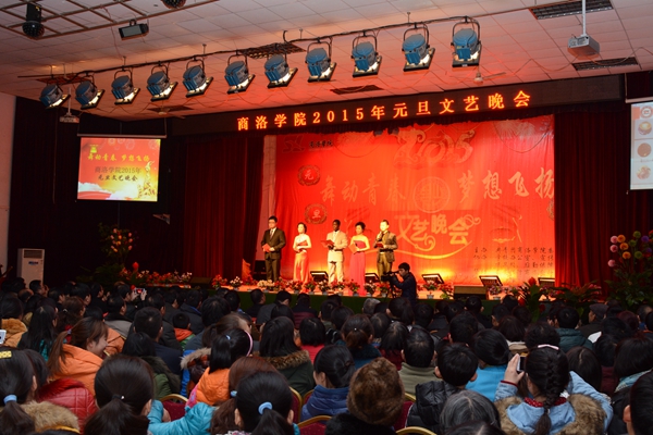 馬蹄留勝跡,羊毫譜新歌。12月30日晚,我校2015年度元旦文藝晚會在大學生活動中心隆重舉行。商洛市副市長劉榮賢,校黨委書記張景書、校長劉建林、黨委副書記左曉民、紀委書記王思懷、副校長魏書堂,商洛市教育局局長胡棟梁、共青團商洛市委書記曹艷萍、商州區(qū)政府副區(qū)長楊俊芬,商洛供電局、中國銀行商洛分行、中國建設銀行商洛分行、中國郵政商洛分公司、中國移動商洛分公司、中國聯通商洛分公司、中國電信商洛分公司、商洛市劇團、中國移動商州分公司有關領導同師生們一起觀看了演出